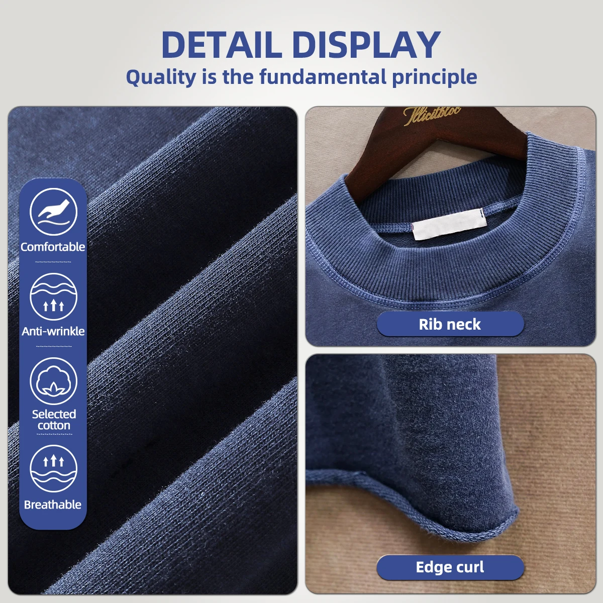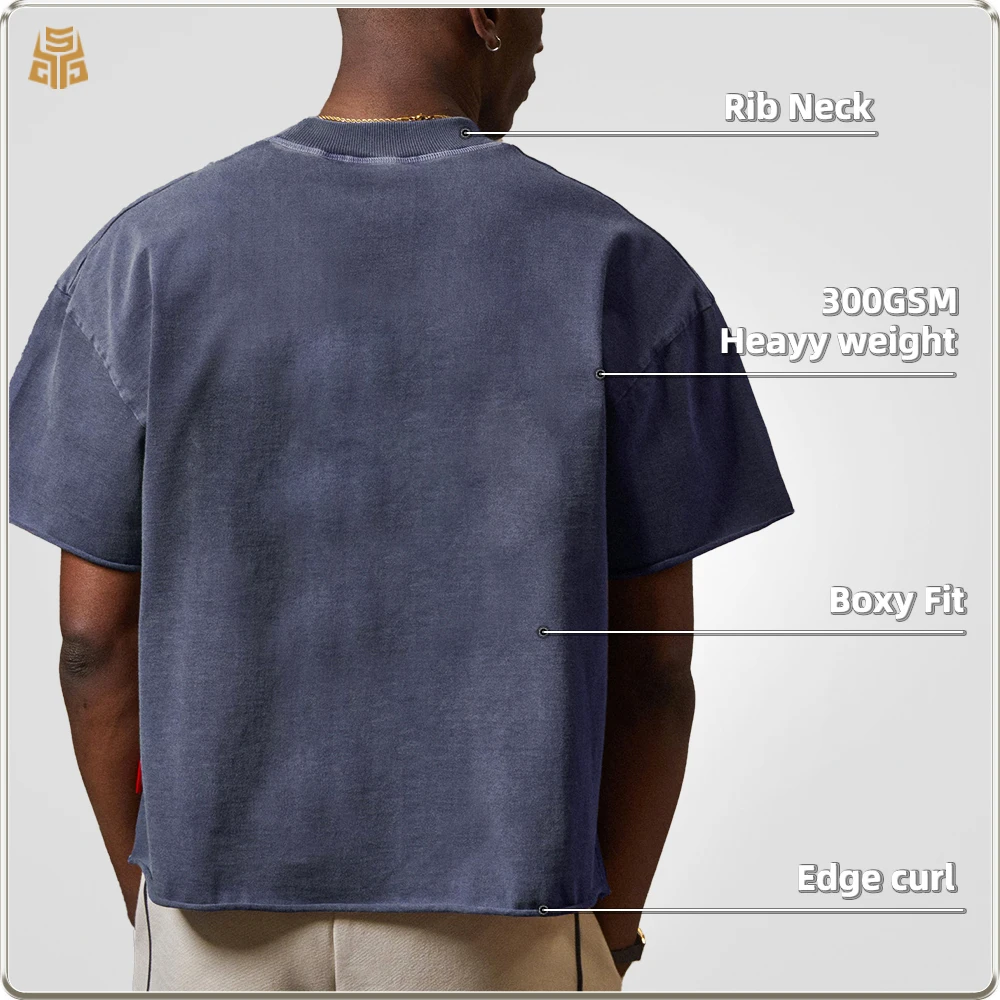 T-shirt ample en coton, impression personnalisée, 300 g/m², lavage vintage à l'acide, t-shirts en coton pour hommes, t-shirts oversize, t-shirt lourd
