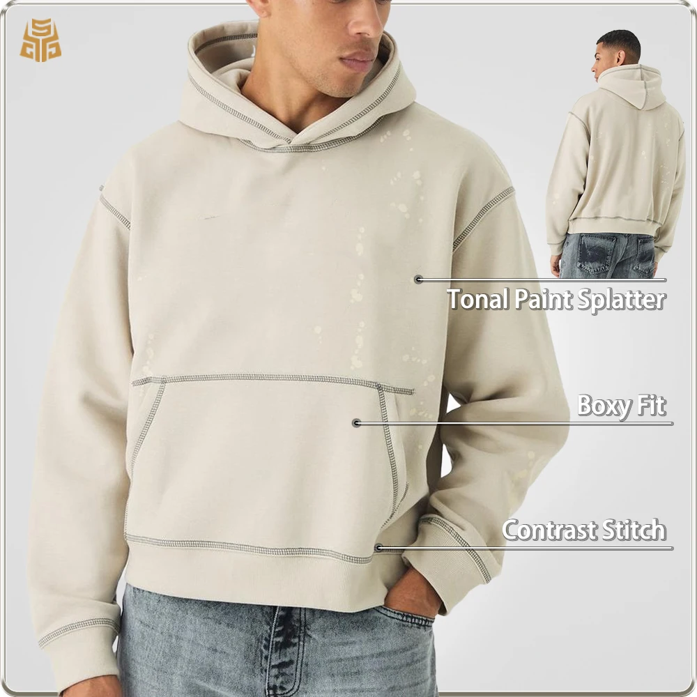 Sweat à capuche en polaire personnalisés pour hommes Streetwear Recoupé Hip Hop Manches longues Haut poids 500gsm Impression à la mode Pulls à capuche pour hommes