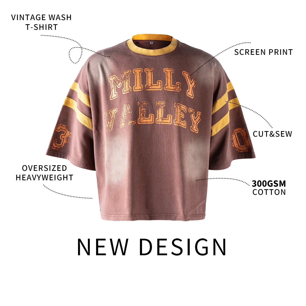 T-shirt personnalisé en coton 100 % pour homme, coupe oversize boîte, col rond, 300 g/m², t-shirt vintage de haute qualité avec lavage acide