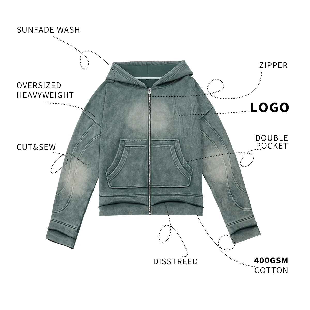 Fabricant de hoodies pour hommes sur mesure, oversized, camouflage complet, zippé, style boxy, streetwear, lourd, 100 % coton, conçu pour les hommes