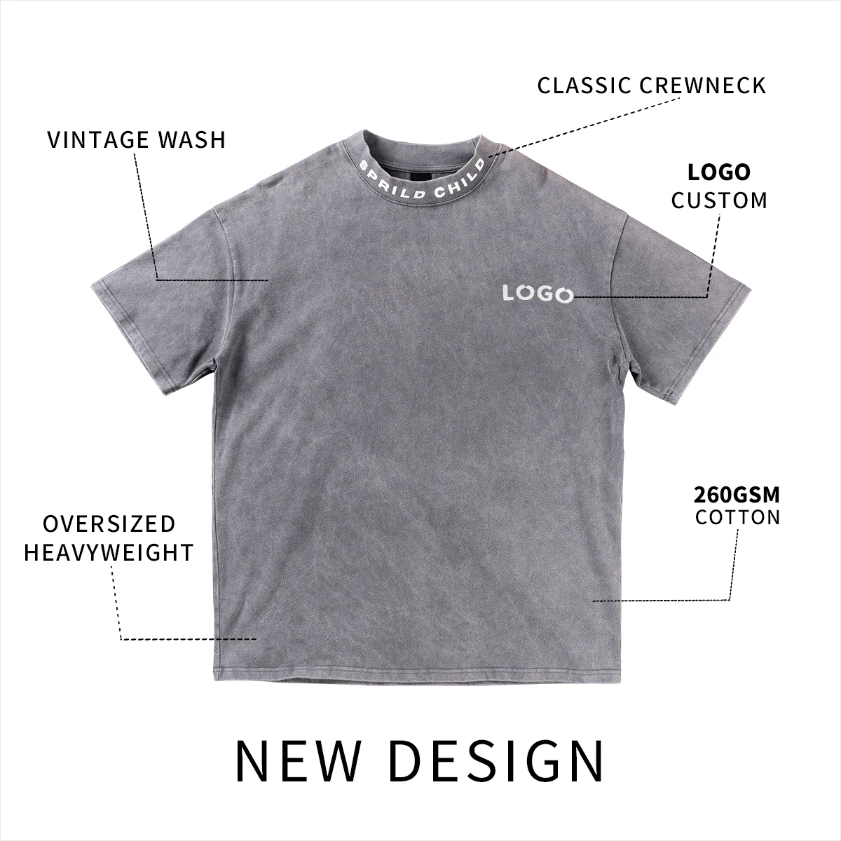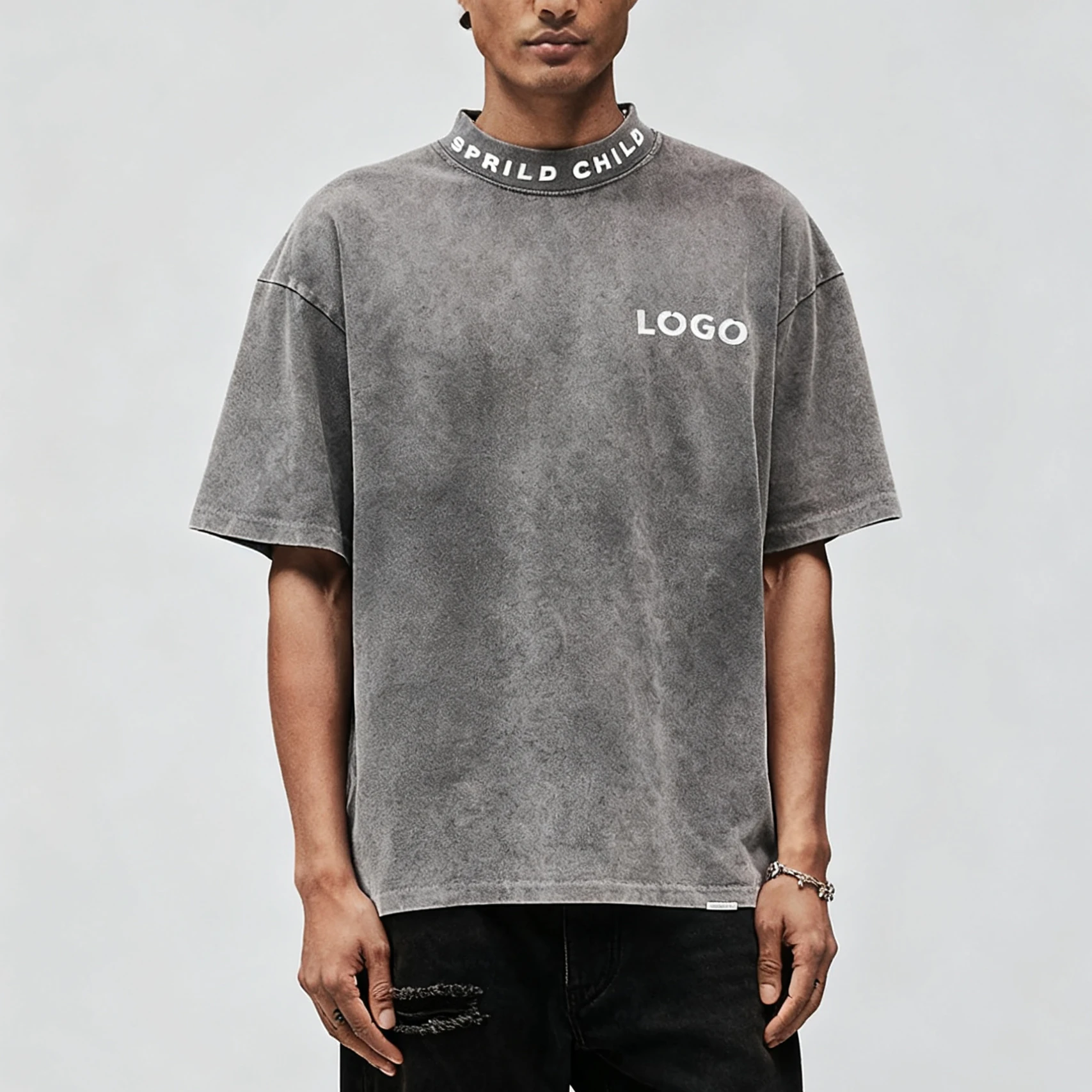 Logo personnalisé Coupe boxy T-shirt pour hommes 100 % coton 280gsm Rib Col rond Épaules tombantes Oversized T-shirts de rue pour hommes