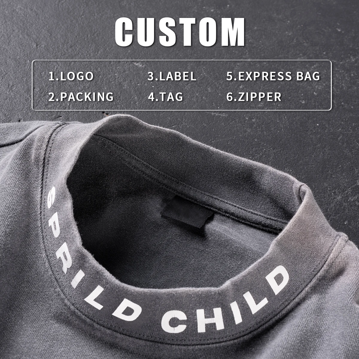 • Logo personnalisé Coupe boxy T-shirt pour hommes 100 % coton 280gsm Rib Col rond Épaules tombantes Oversized T-shirts de rue pour hommes