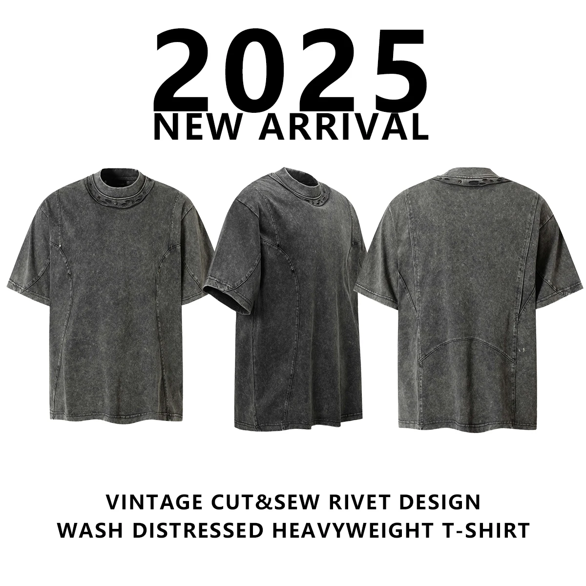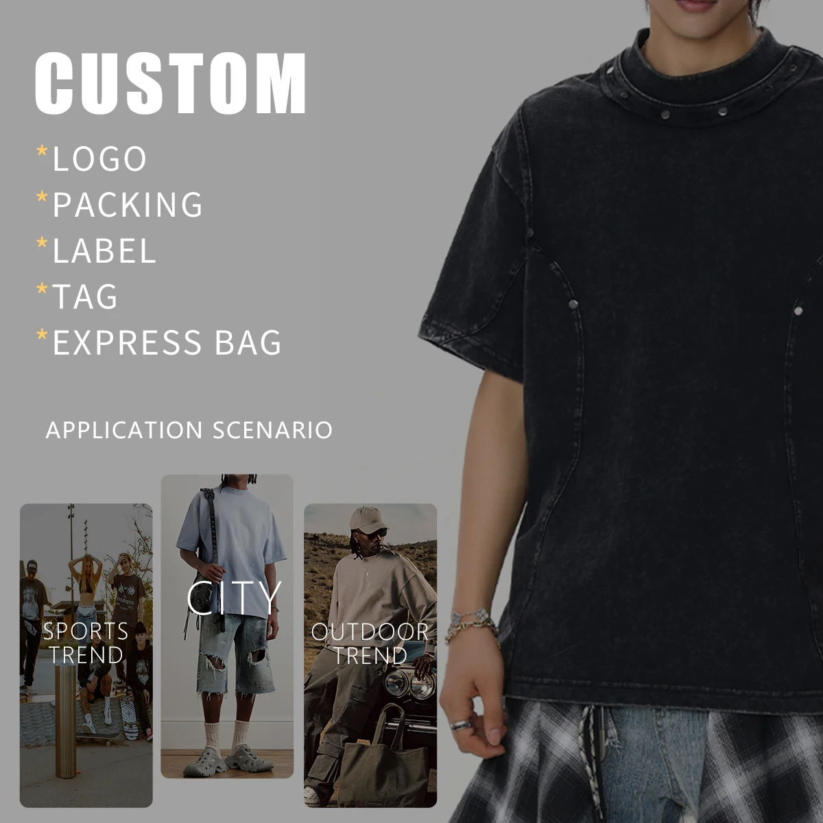 T-shirt de luxe streetwear surdimensionné pour homme, 300 g/m², en coton 100 % personnalisé, vintage à effet usé, pour homme