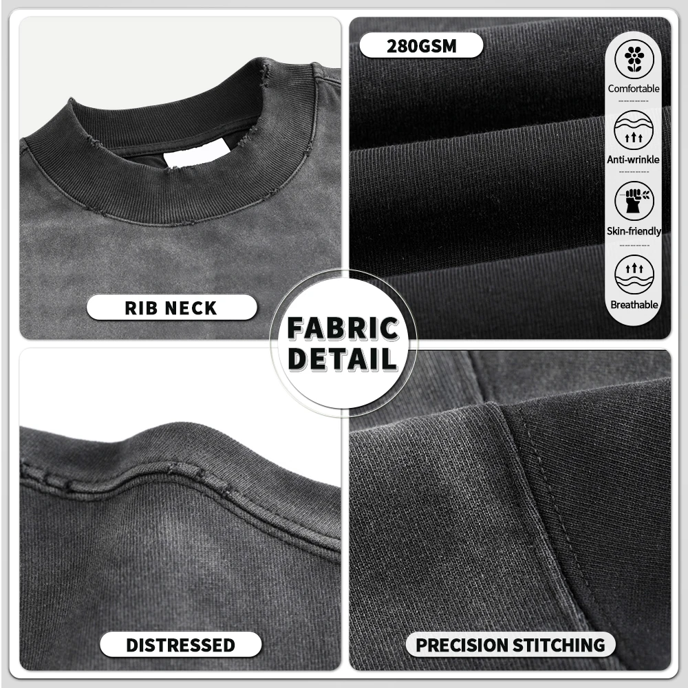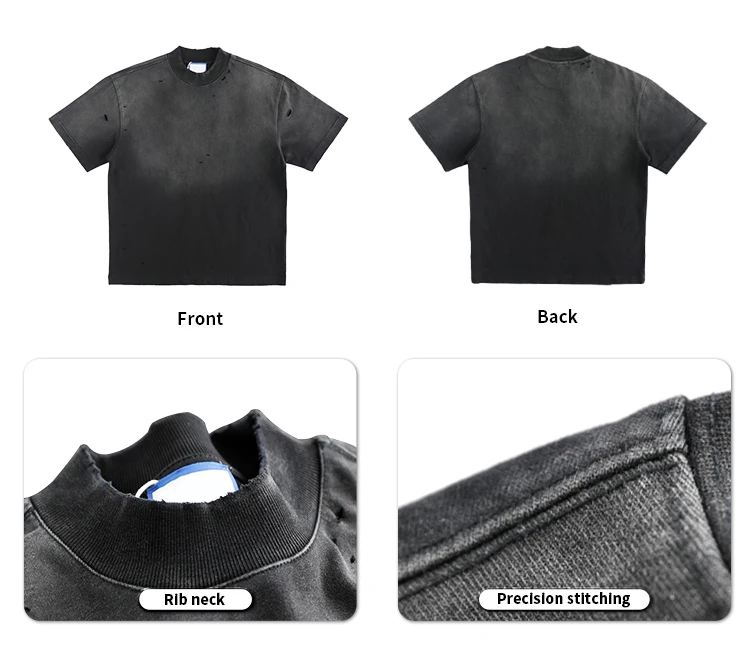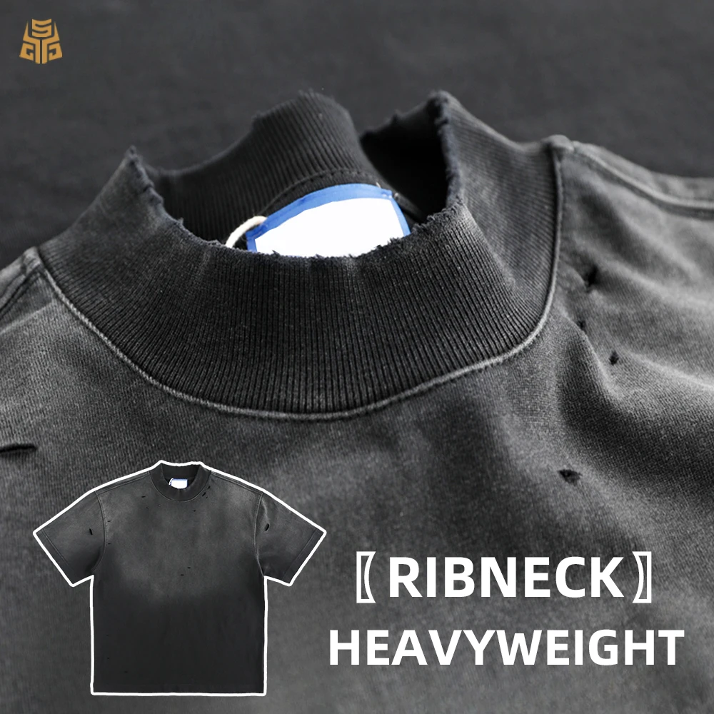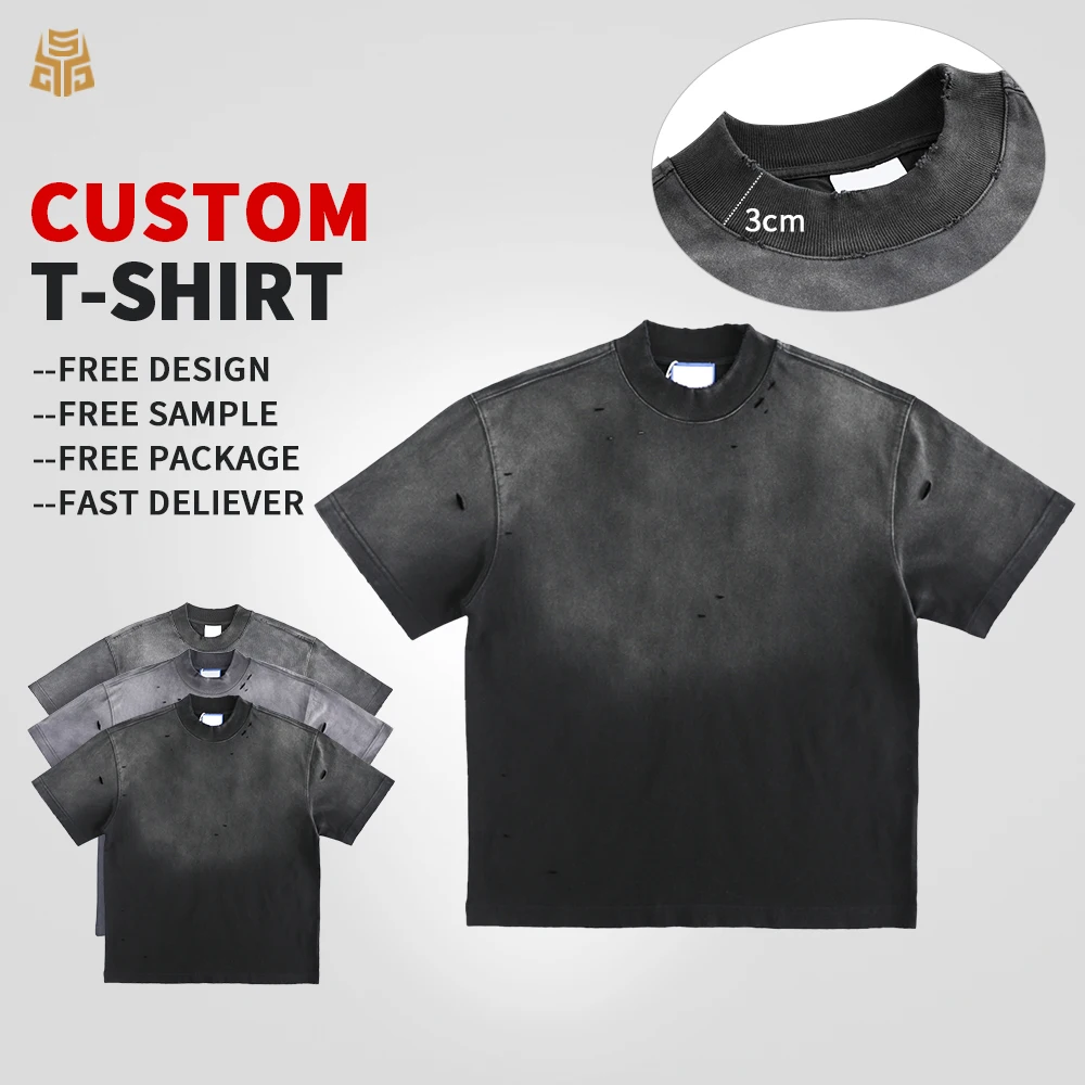 t-shirt pour homme en coton 100 %, 300 g/m², oversize, modèle Heavyweight, épaule tombante, broderie personnalisée avec logo, patch, effet vintage lavé à l'acide