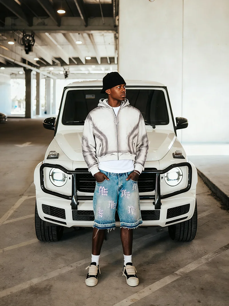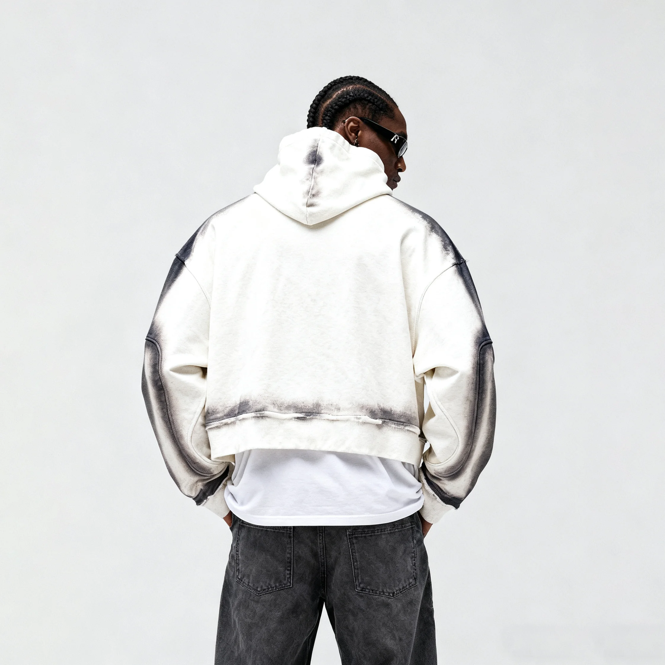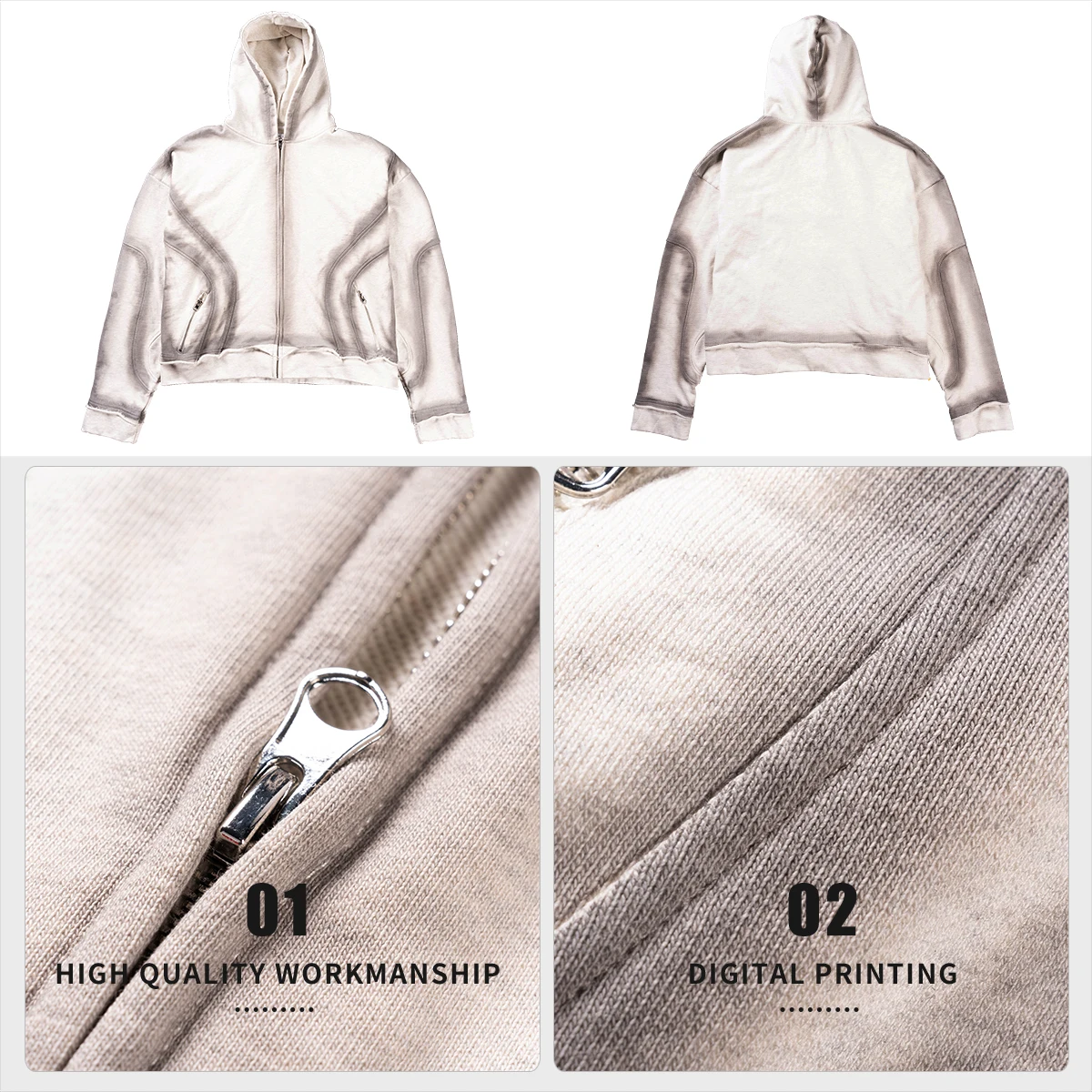 400gsm 박스형 핏 스트리트웨어 더티워시 지퍼업 후드 티셔츠 빈티지 디스트레스드 후드 티셔츠 남성용 오버사이즈 헤비웨이트 컷앤소 디자인
