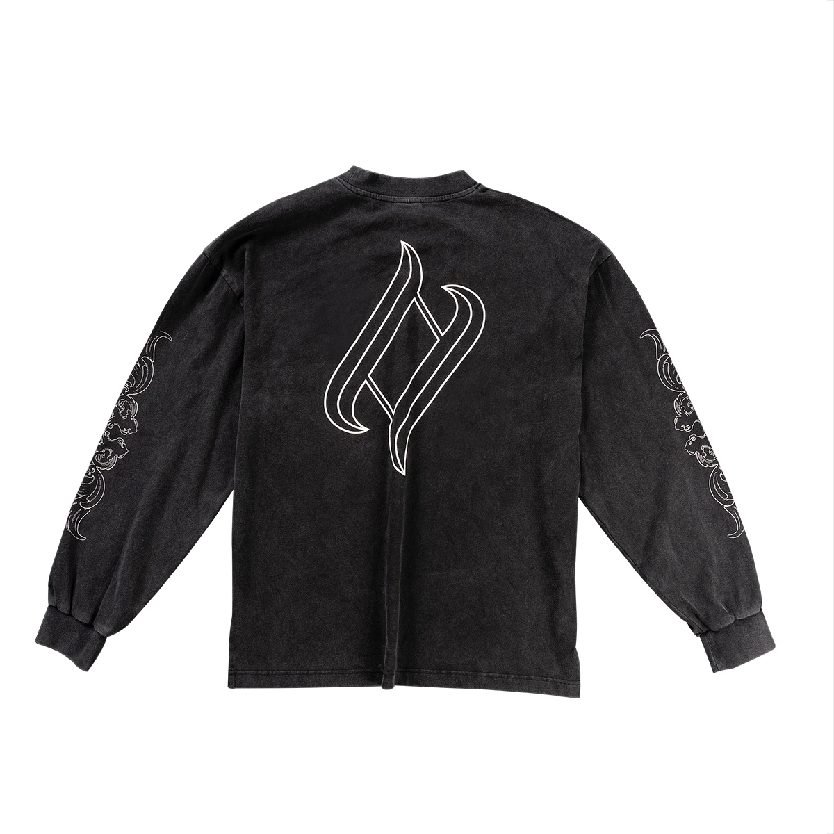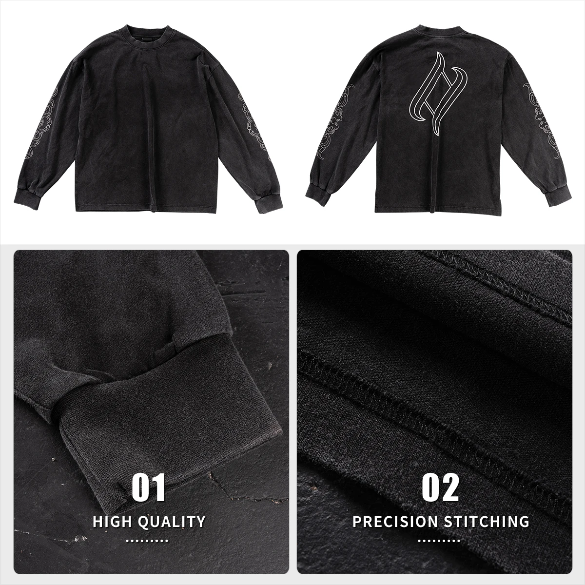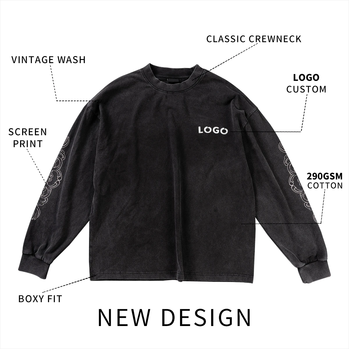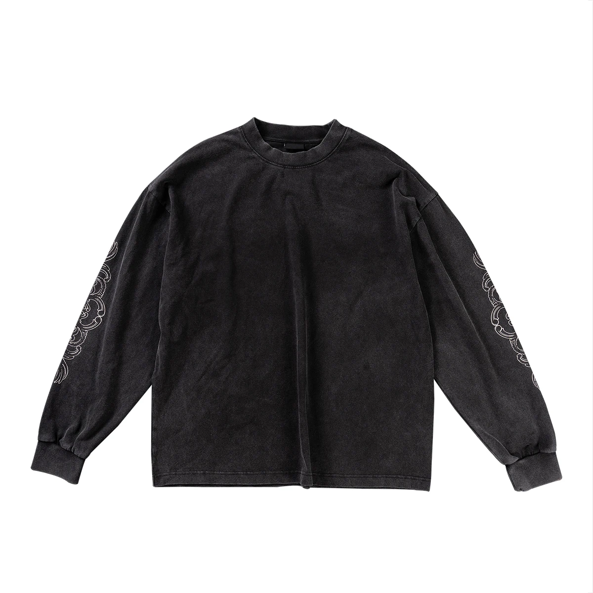 맞춤형 롱슬리브 티셔츠 100% 면 DTG 디자인 스트리트웨어 티셔츠 오버사이즈 티셔츠 박스핏 빈티지 액시드 워시 티셔츠 남성용