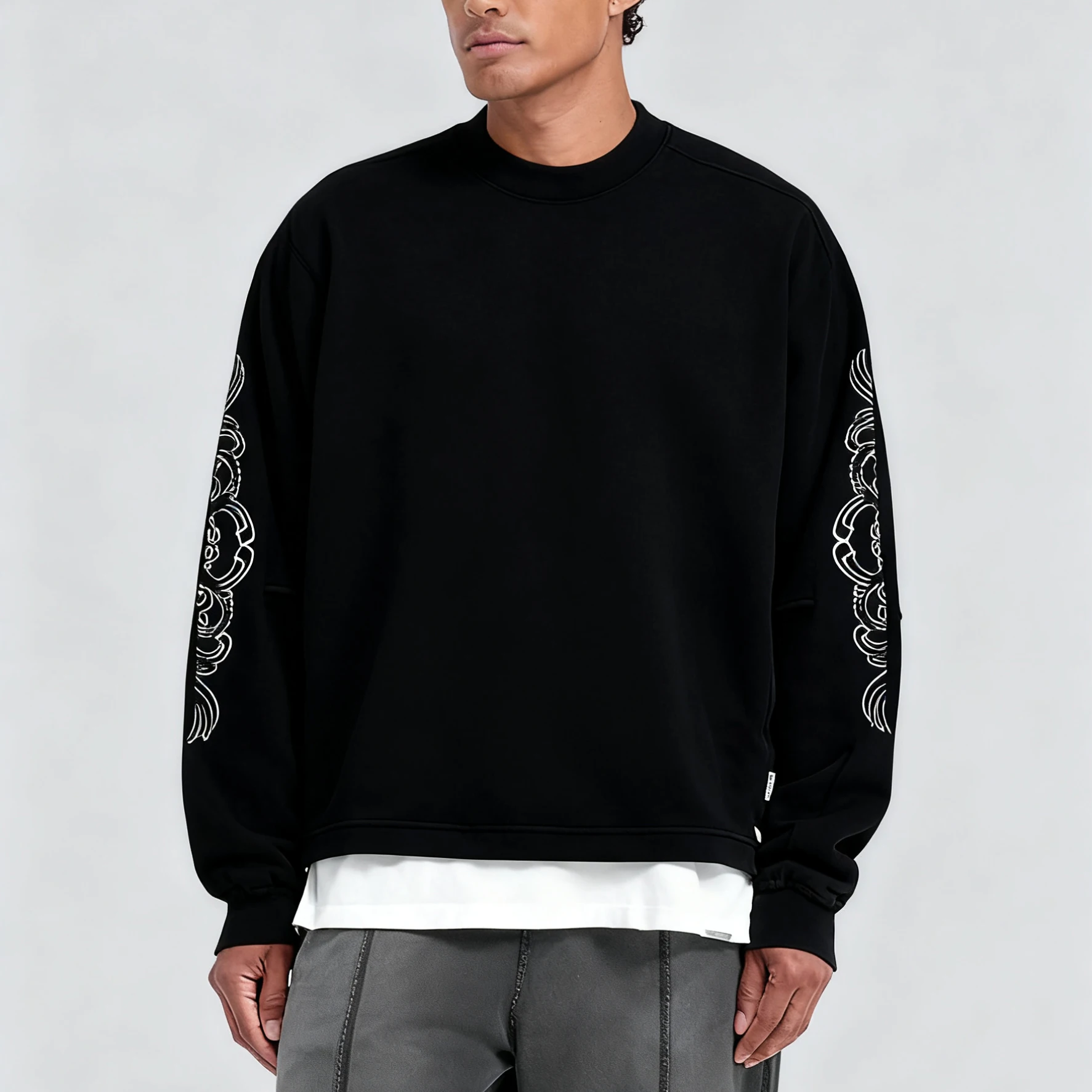 • 커스텀 로고 박스핏 남성 티셔츠 100% 코튼 280gsm 리브 크루넥 드롭 숄더 오버사이즈 스트리트웨어 티셔츠
