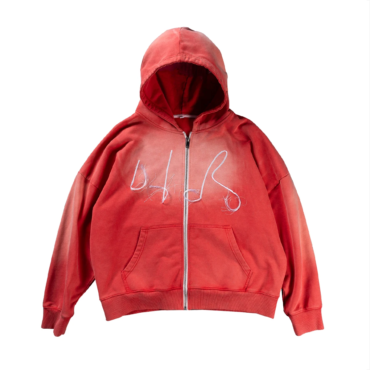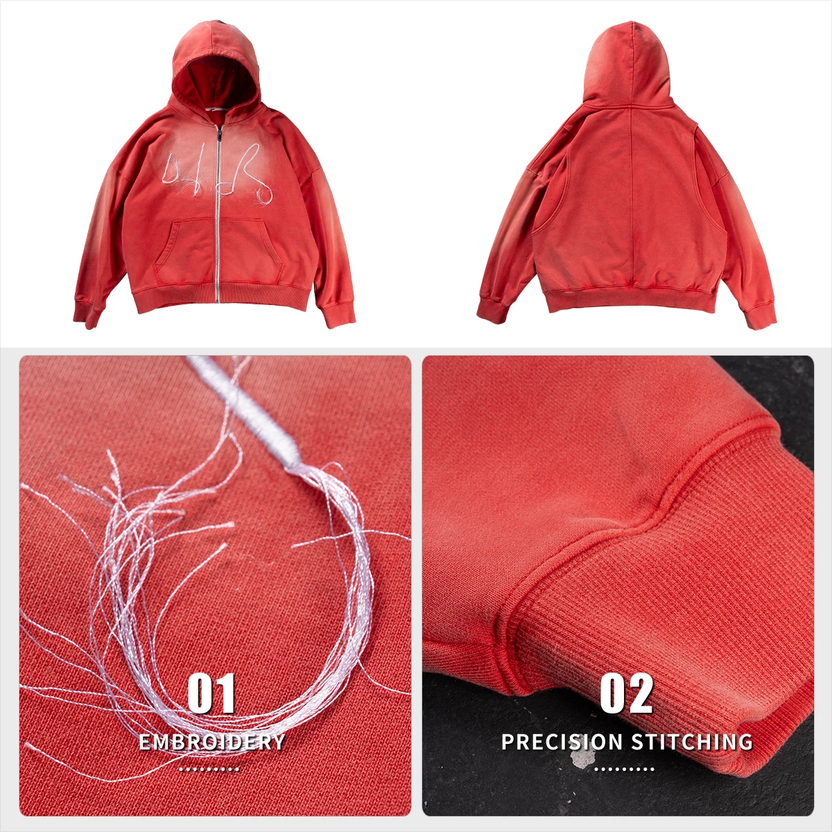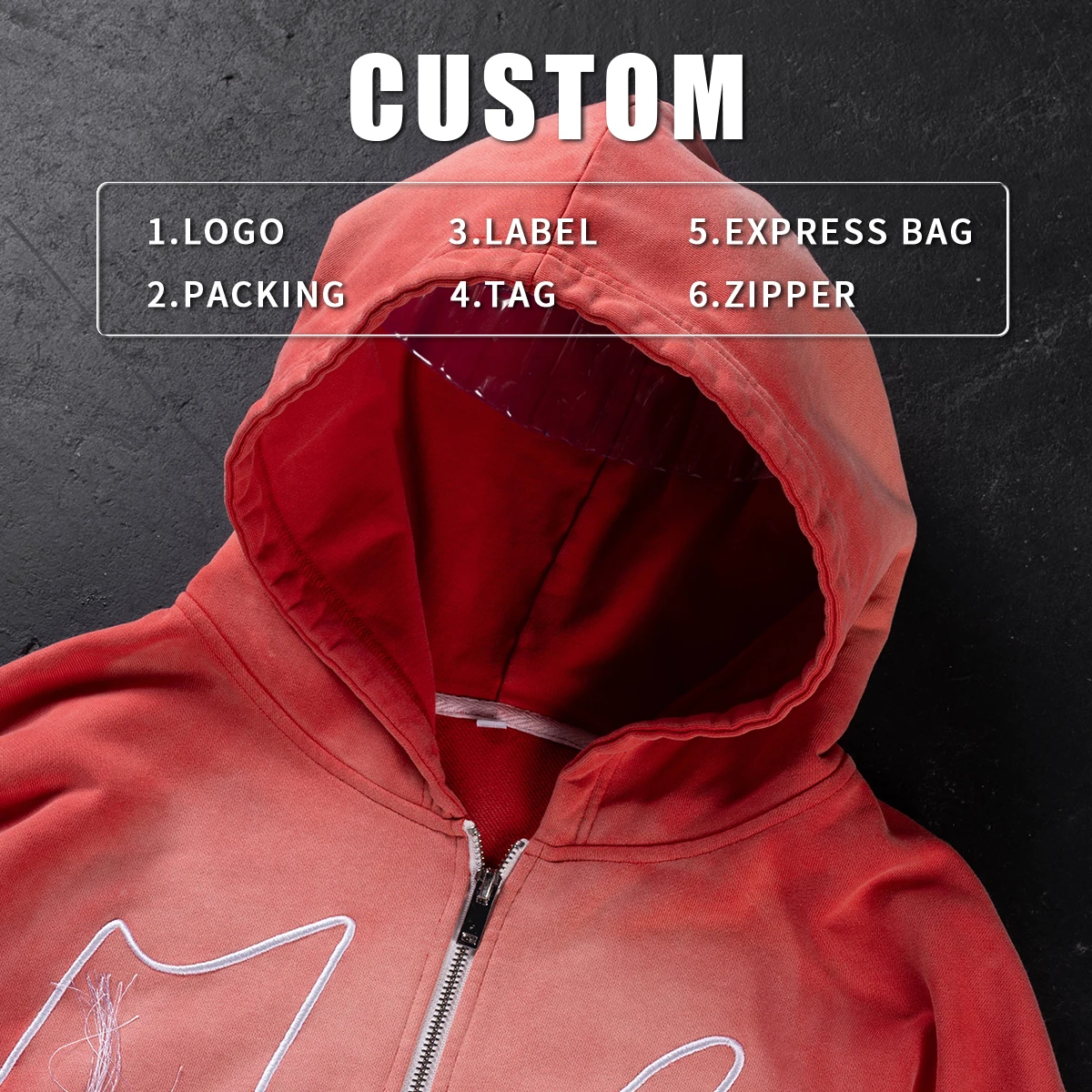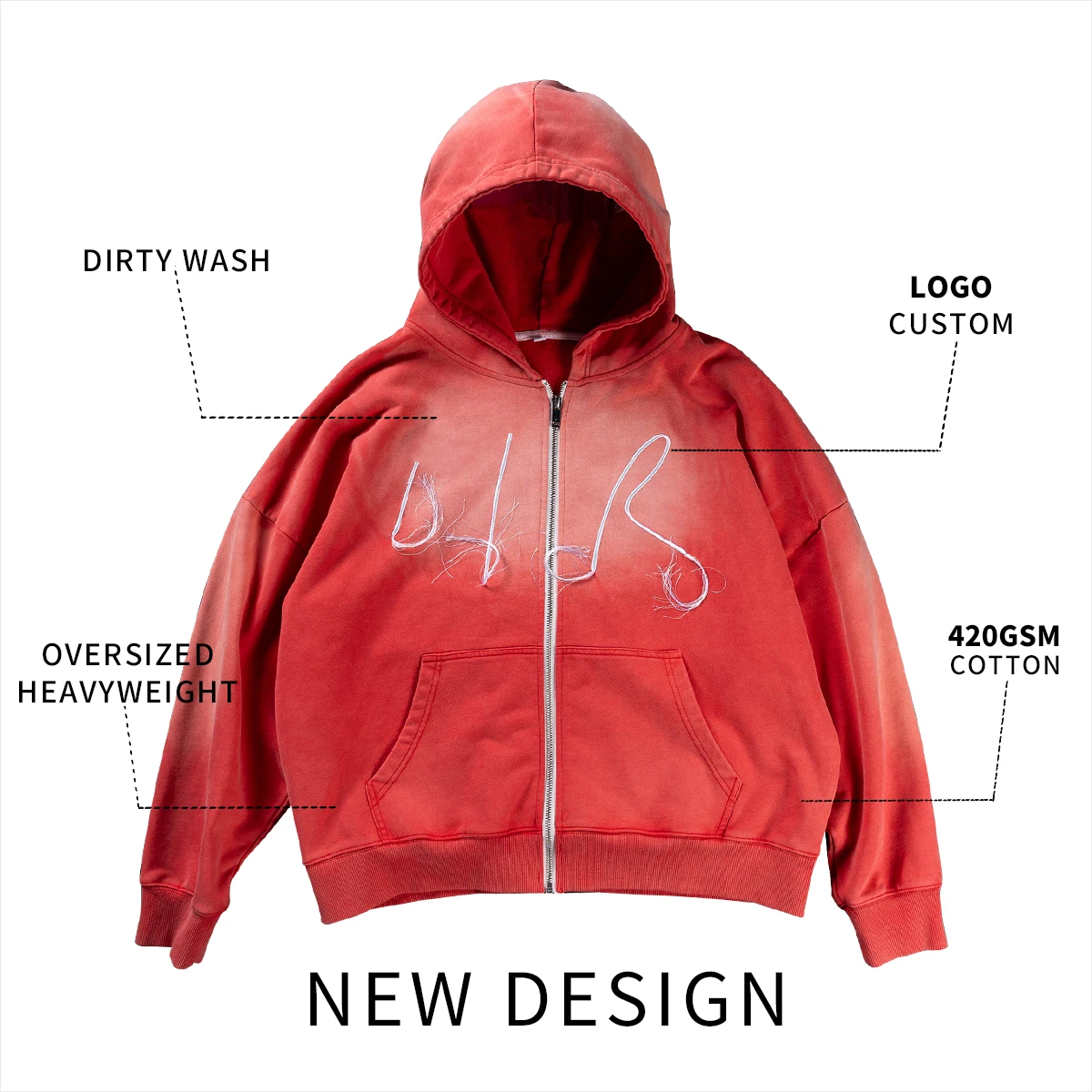 맞춤형 오버사이즈 헤비웨이트 지퍼 후드티 420Gsm 100%면 스트리트웨어 빈티지 액시드 워시 디자인 후드티 제조업체