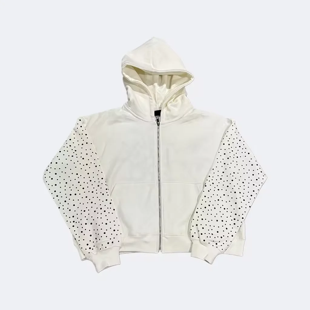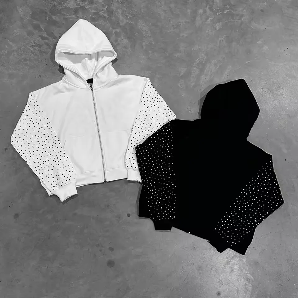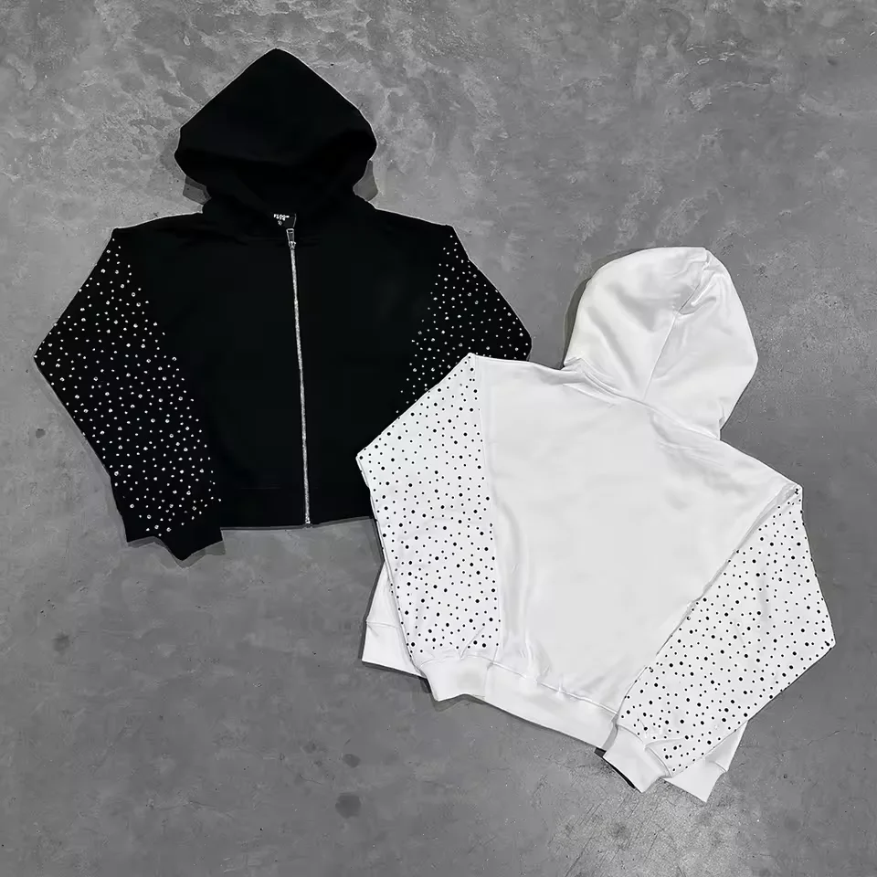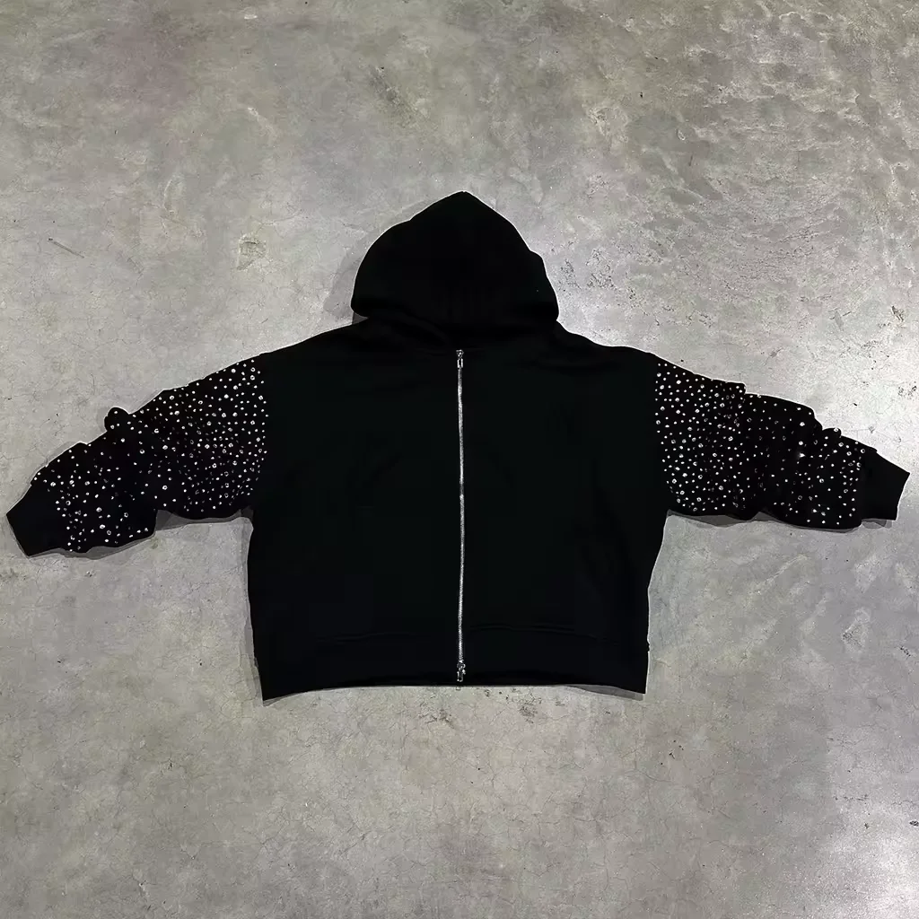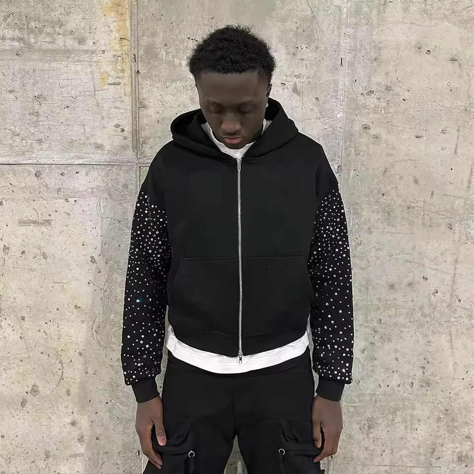 남성용 후드 라인스톤 풀 지퍼 100% 코튼 오버사이즈 인쇄 맞춤 후디 제조사 남성용 무게감 있는 후드