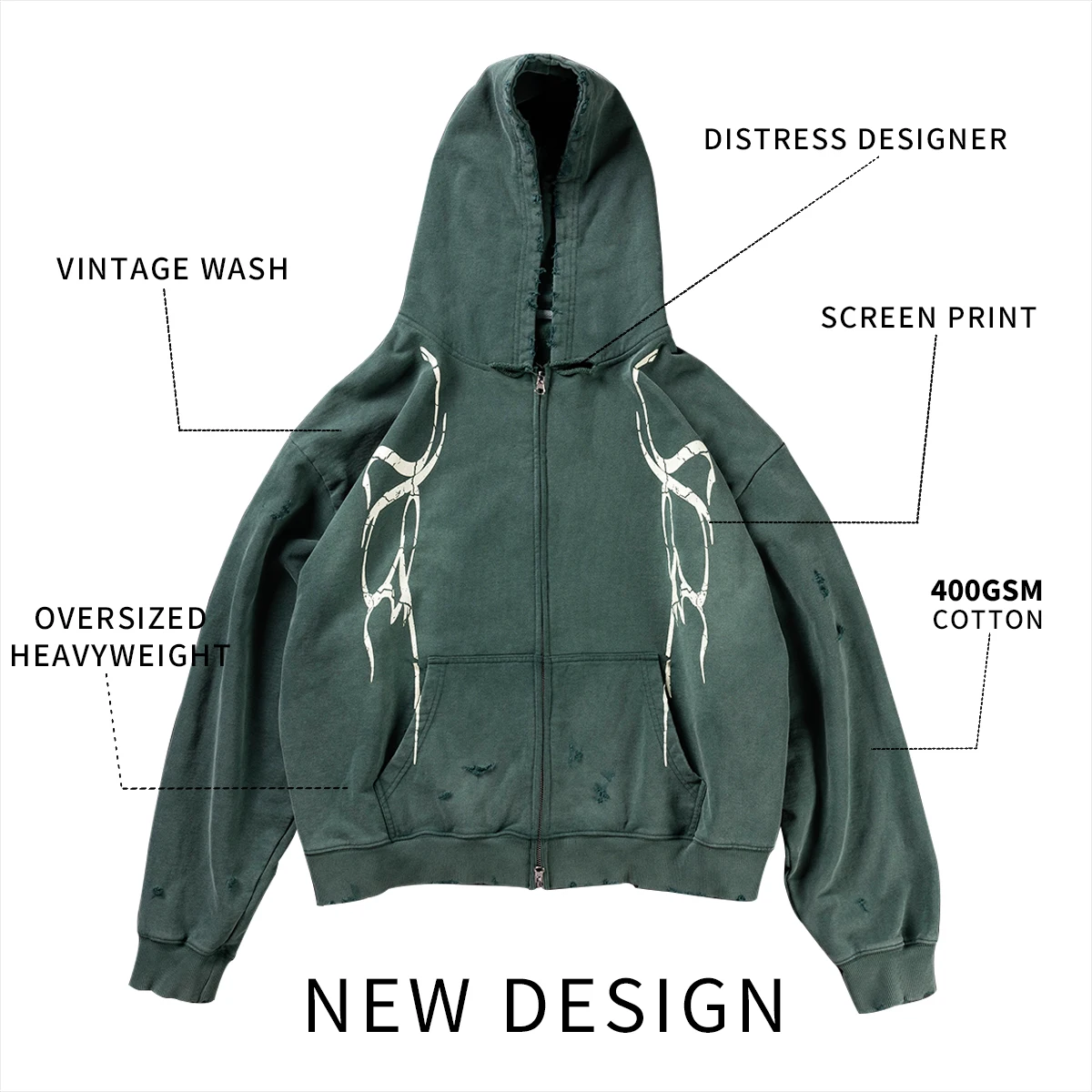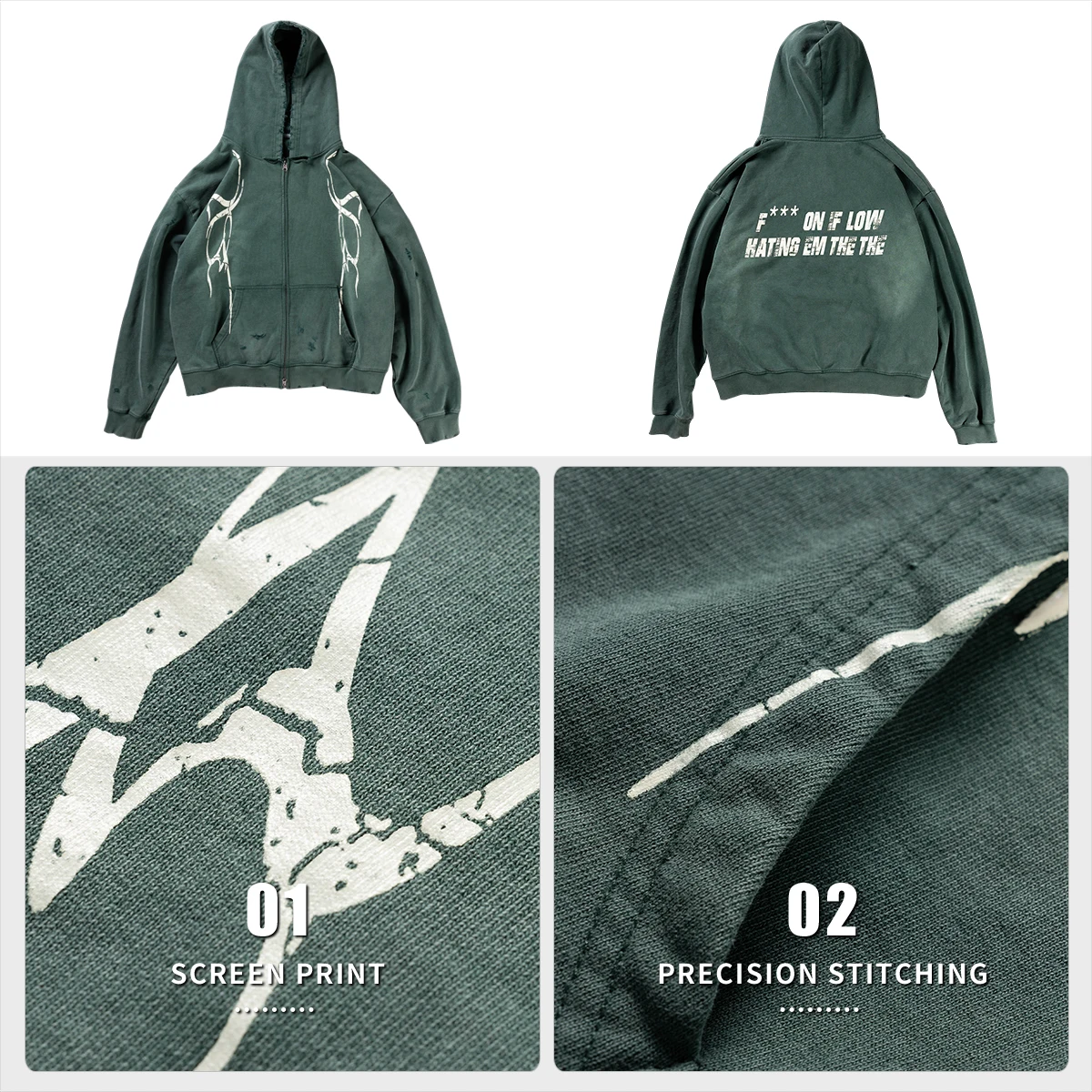 • 힙합 레트로 블랙 후드티 고스 팡크 워싱 처리된 Y2k 지퍼 후드 투박한 빈티지 후드티 오버사이즈 스트리트웨어 디자인 남성용 헤비웨이트 후드티