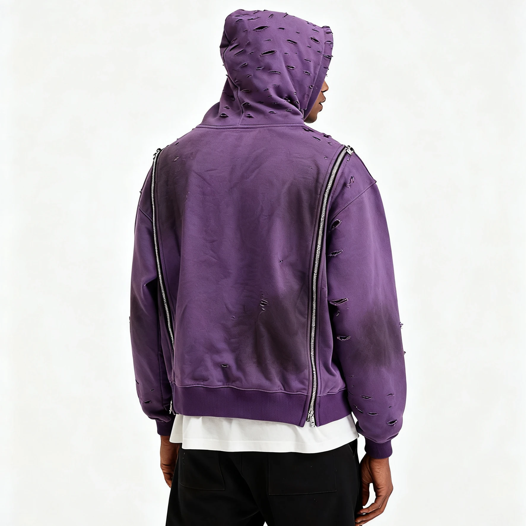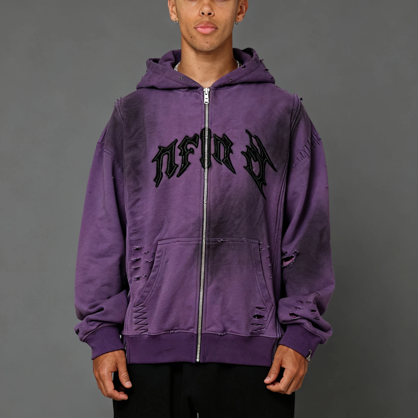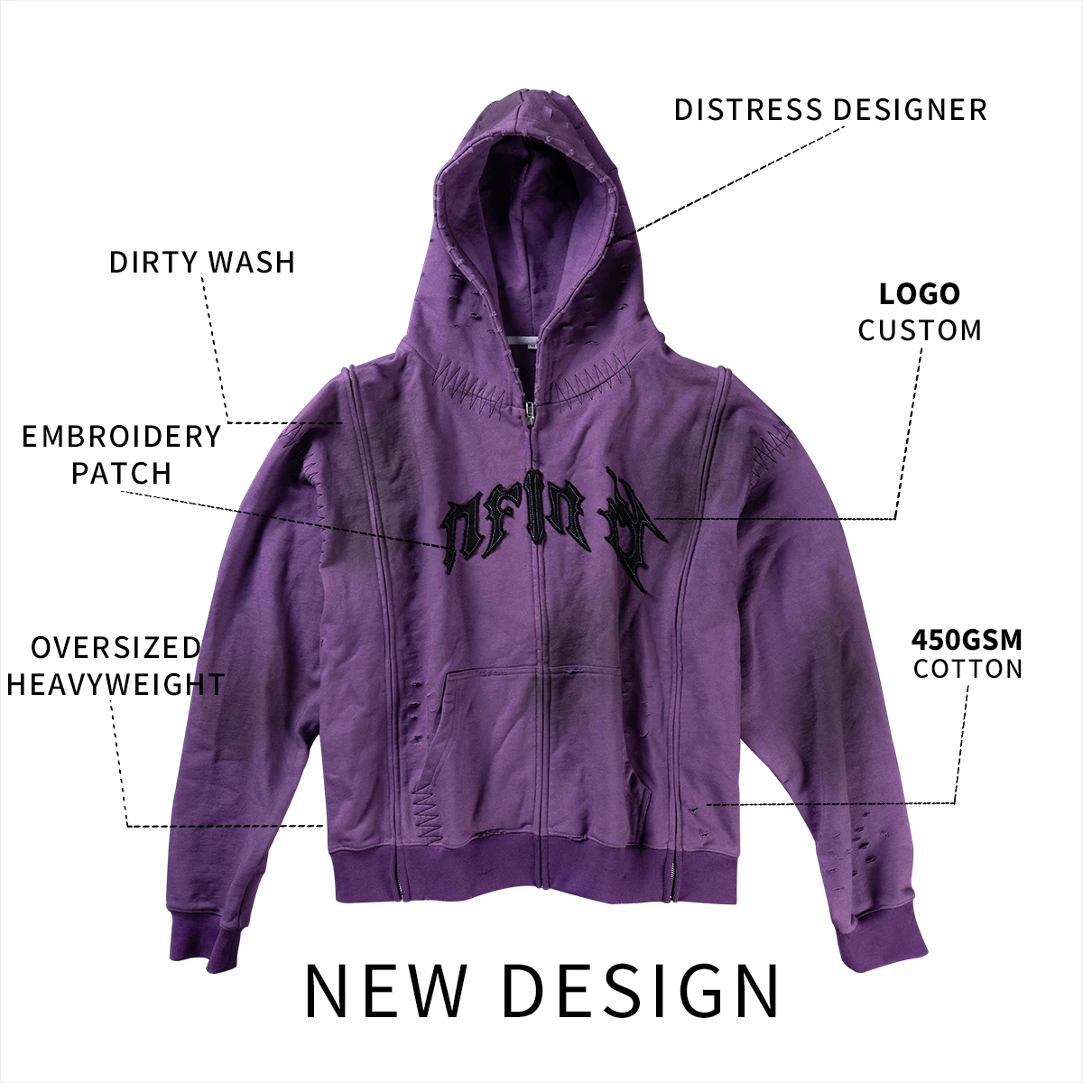 product 450gsm oversized heavyweight vintage acid wash mens zip up embroidery hoodie cotton distress design dirty wash hoodie unisex-9