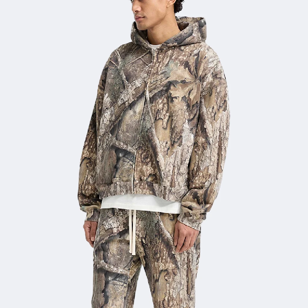 Custom Men's Hoodie Manufacturer Oversized Camo Full Zip up Boxy Streetwear Hoodies Heavyweight 100% Cotton Designed for Man