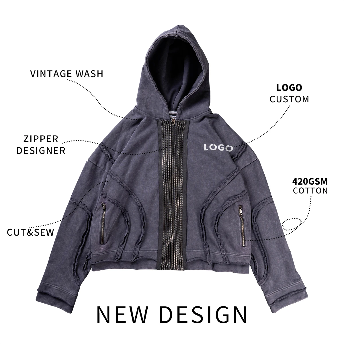 product hip hop retro black hoodie goth punk washed  y2k zip up vintage hoodie oversized streetwear design heavyweight hoodie for men-7