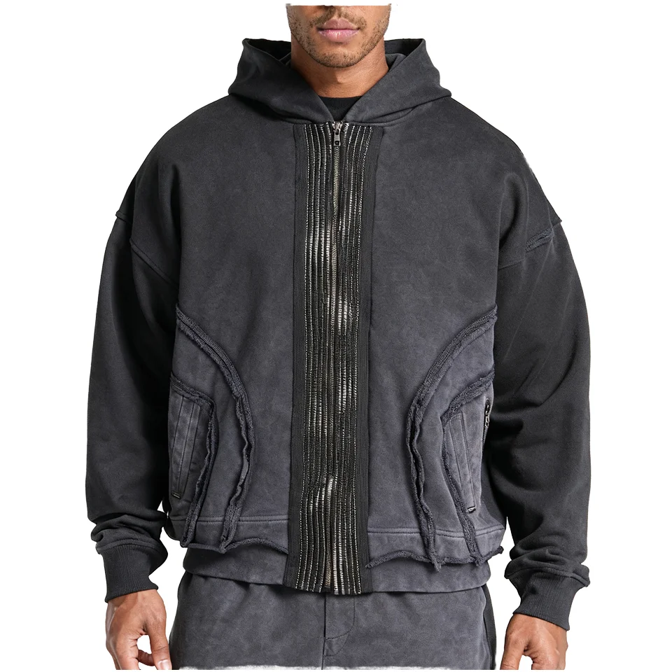 product hip hop retro black hoodie goth punk washed  y2k zip up vintage hoodie oversized streetwear design heavyweight hoodie for men-10