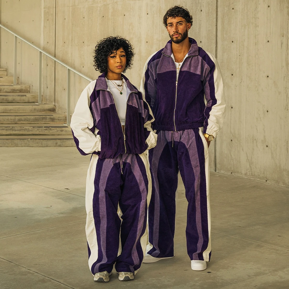 Mens Sweatpants and Hoodie Set Zip up Custom Design Oversized Streetwear Color Block Patchwork Corduroy Running Jacket Tracksuit